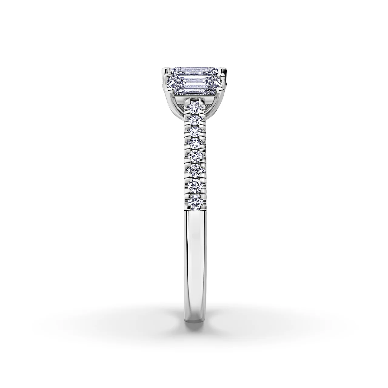Celebrate a love that grows with the Adore Trilogy, a trilogy engagement ring that symbolizes the past, present, and future of your unique journey together. Featuring three central diamonds in a choice of Emerald, Oval, Princess, or Round cuts, this ring is elegantly complemented by pave side diamonds that add sparkle and depth to its overall design.