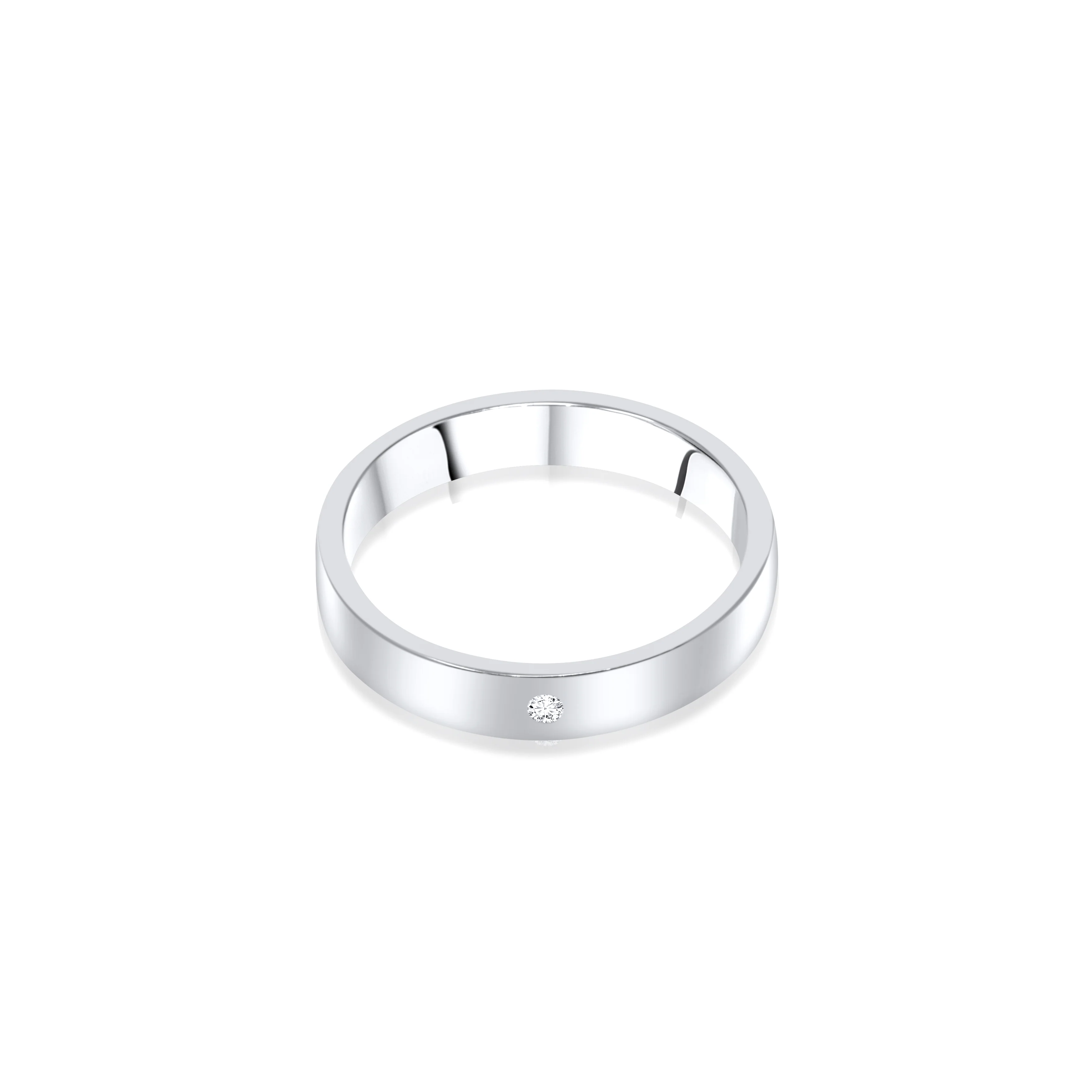 - Design: Flat comfort profile with a single, beautifully set diamond for a refined look.