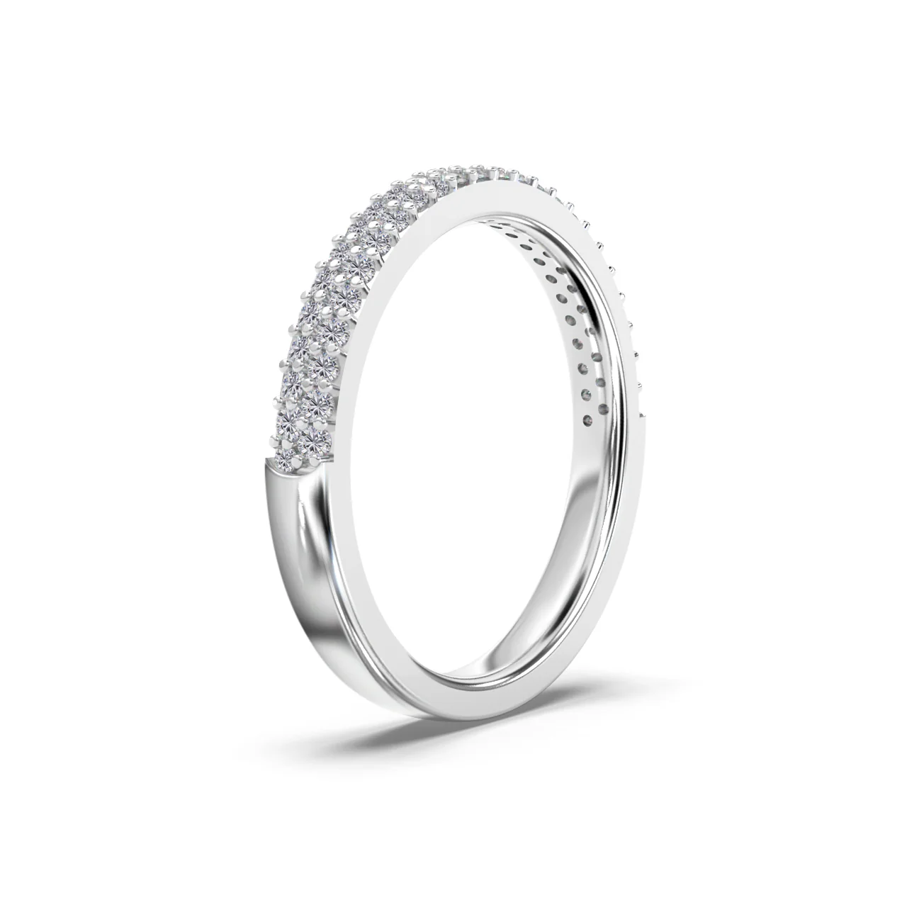 The Riviere band features a 2.2mm width with 49 diamonds set in a double row pave design. This luxurious and intricate piece offers a stunning brilliance. Available in white gold, rose gold, yellow gold, and platinum.