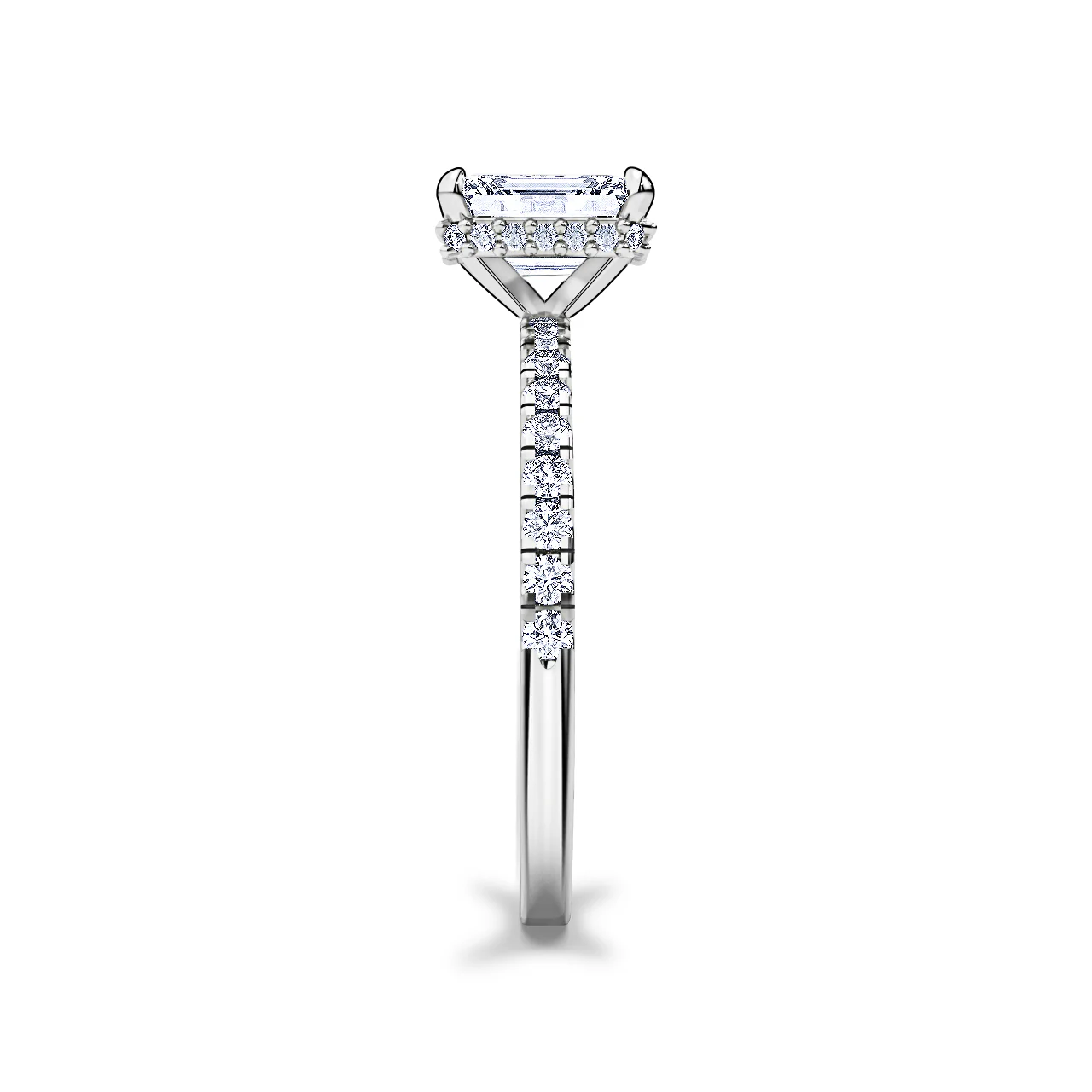 Subtle yet stunning, The Whisper x Side Diamonds embodies a quiet luxury that speaks volumes. This sophisticated engagement ring features a central diamond in your choice of Emerald, Oval, or Radiant cuts, enhanced by a secret diamond halo and adorned with shimmering pave side diamonds that gracefully extend down the band.